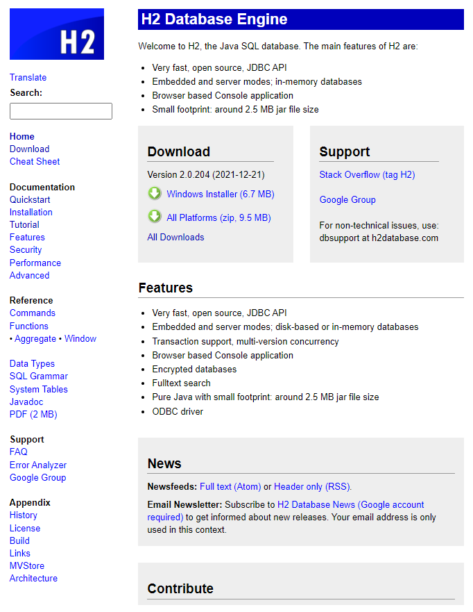 자바가 로컬에 설치가 되어 있어야 하며, H2 DB Driver 도 사용가능하며, Oracle, MySQL, PostgreSQL 등과 호환이 가능하다.