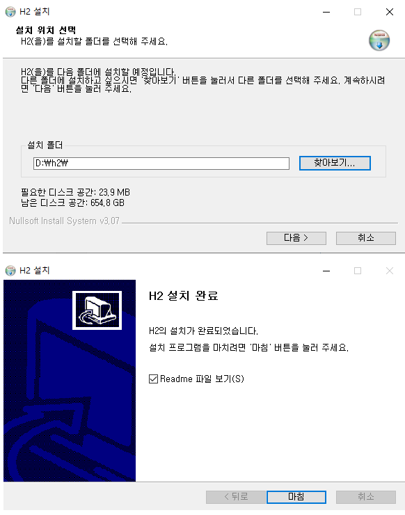 - H2/bin/h2-${version}.jar 파일을 java 실행 명령어로 DB 를 구동 할 수 있다.